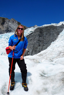 Halverwege de westkust ligt de Franz Josef gletsjer. Een van de mooiste gletsjers van Nieuw-Zeeland. De gletsjer is momenteel 12 kilometer lang en eindigt op 19 kilometer van de Tasmanzee. Bijna nergens ter wereld vind je een gletsjer die eindigt in een regenwoud of een gletsjer die zo dicht bij de zee ligt. De gletsjer verandert snel. Hij beweegt elke dag 1 tot 1,5 meter. Dat is een van de redenen dat je zonder gids de gletsjer niet op mag. Omdat we de gletsjer graag op wilde hebben we een heli-hike geboekt. Met de helikopter naar de gletsjer en vervolgens met een gids een hike van 3 uur. Uiteraard met crampons/ijzers onder onze schoenen om je niet wil uitglijden op de gletsjer. Een geweldige ervaring; de foto’s spreken voor zich.